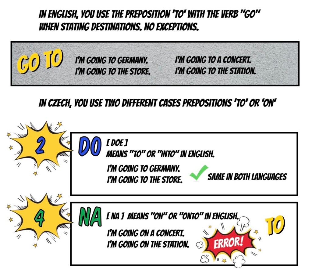 We address the most common errors made by Czech speakers of English as well as going deeper into understanding English verb tenses and preposition use by giving clear explanations based on this comparative approach.